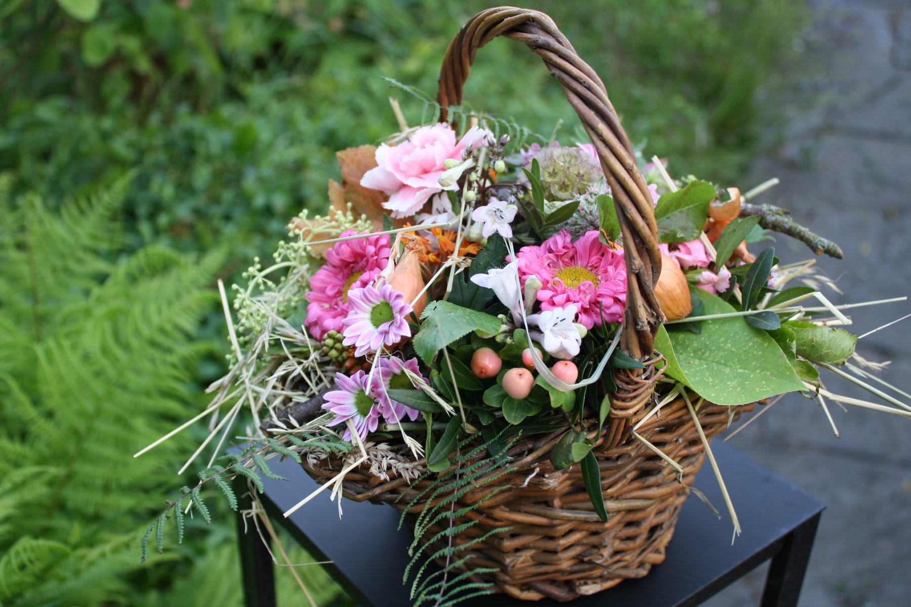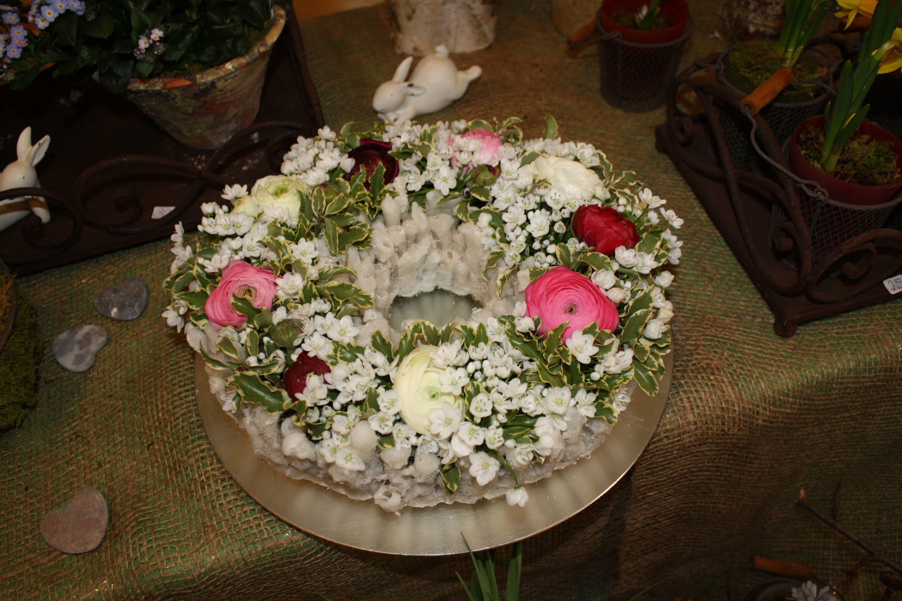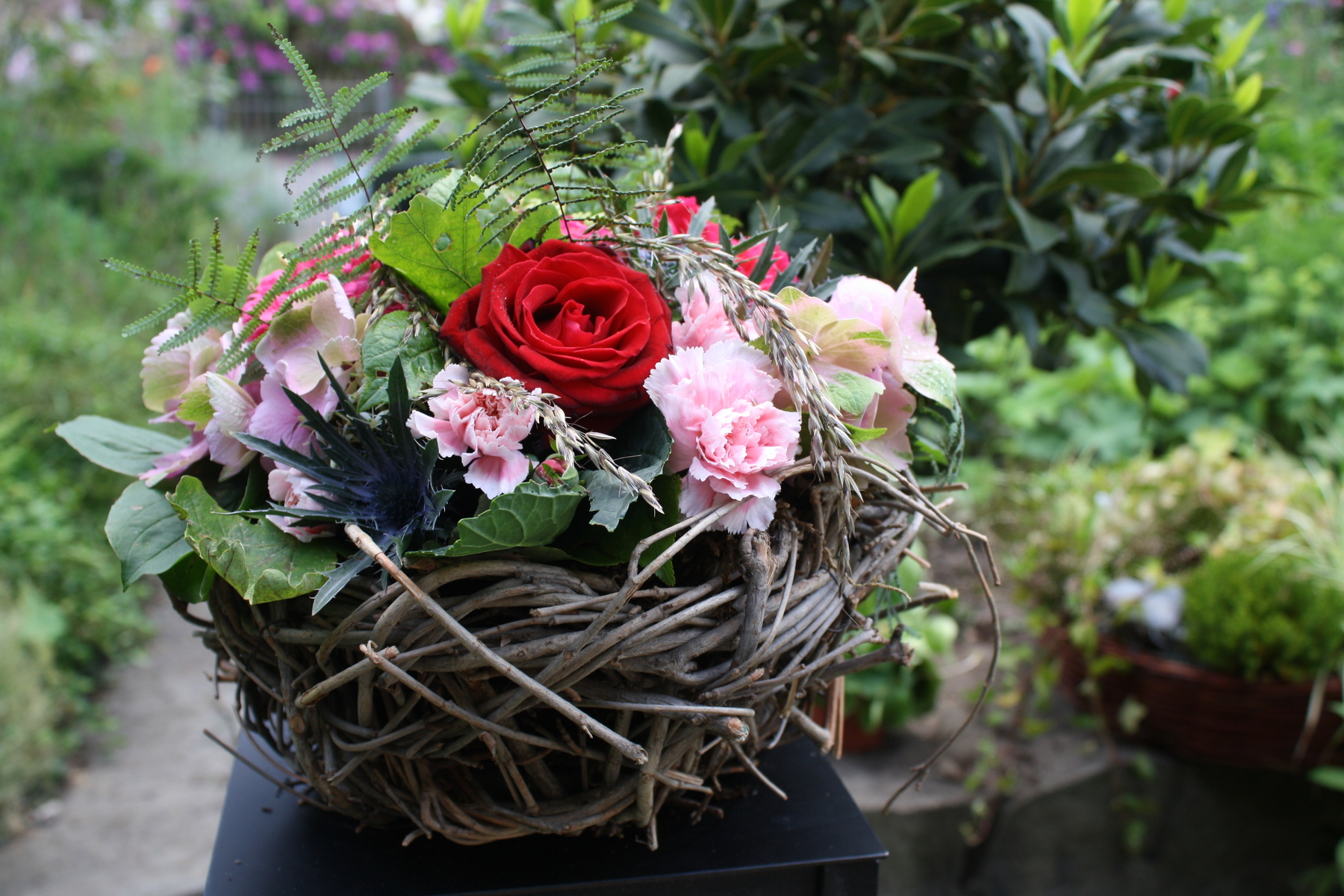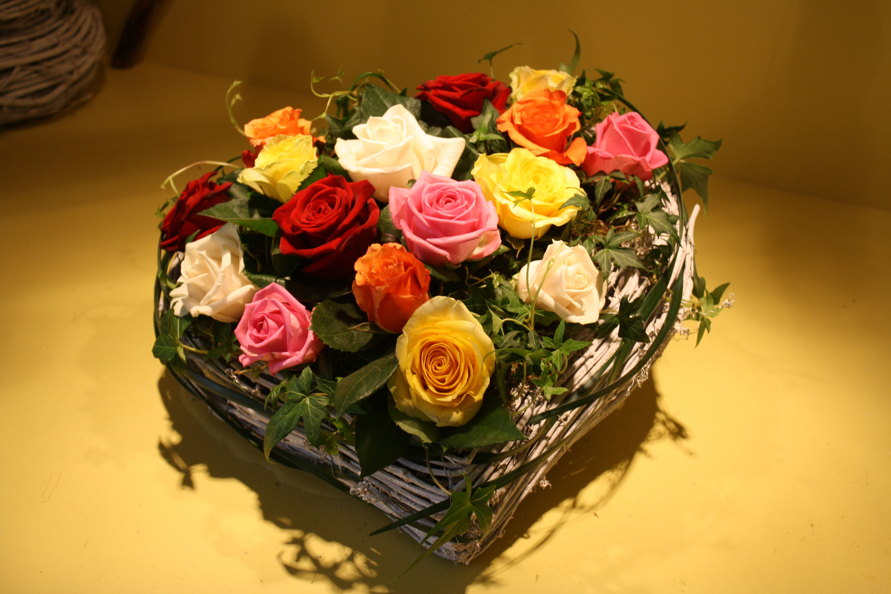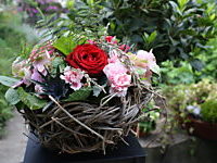 Gestecke Mille fleurs 3 Der Rhein als ruhiger Strom Herz mit Freilandrosen Schleierkrautherz Wachskranz mit Ranunkeln Rustikales Körbchen < zur Übersicht