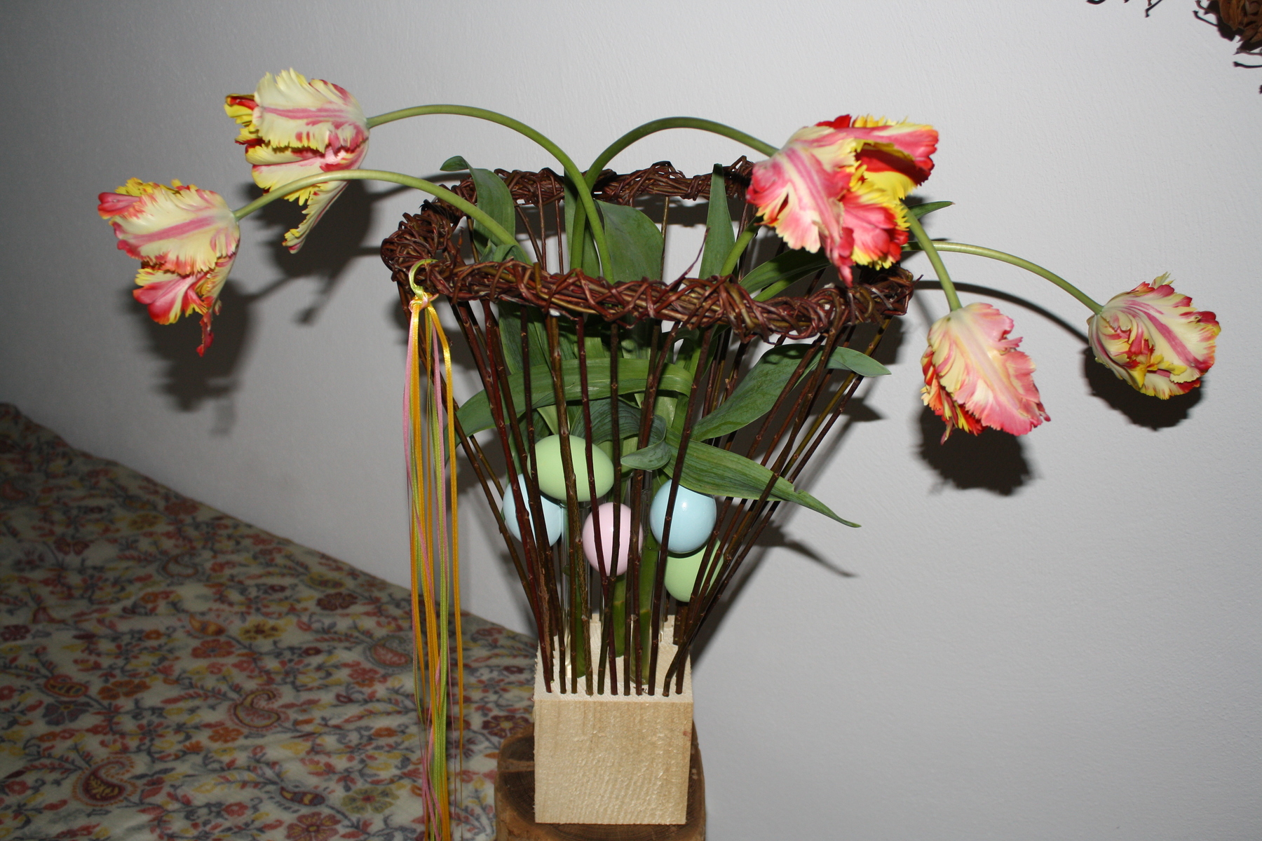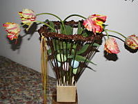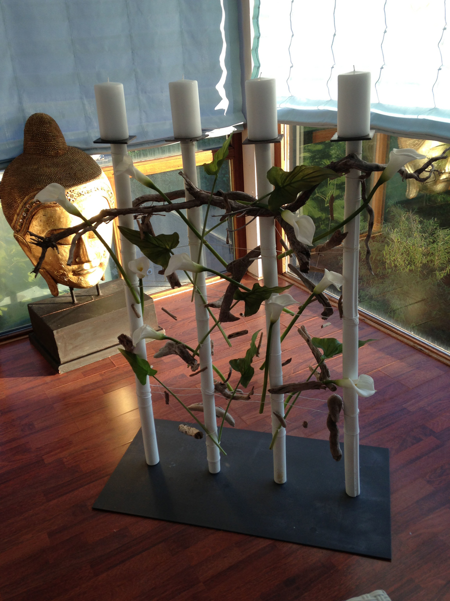 Raumschmuck Agavenblatt ausdekoriert Elfe Kerzenständer eingekleidet mit Lärchenzweigen Kerzenständer im Federkleid Kerzenständer mit Bambusrohren und Magnolie Kerzenständer mit Schwemmholz und Calla Kugel aus Blumentöpfchen Kugel mit Smalten Weidenherz Weidenkäfig mit Frühlingsblumen Windlicht aus Schwemmholz Objekt mit Weiden und Tulpen Eierkranz Häschen im Mooskugelnest < zur Übersicht